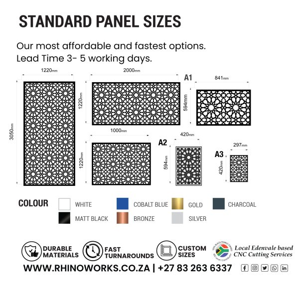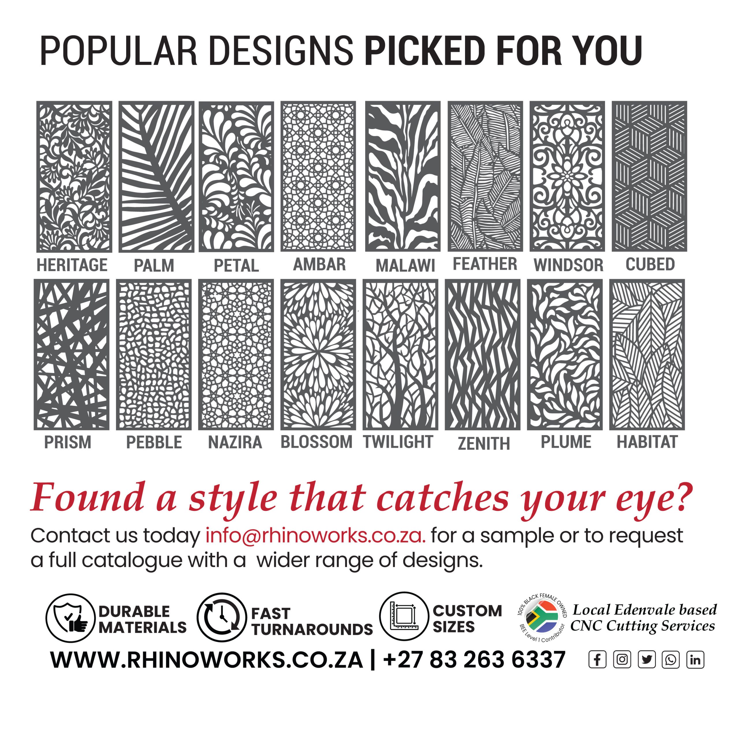 Choose any RhinoWorks pattern, adjust scale, borders & finishes or send us your artwork.