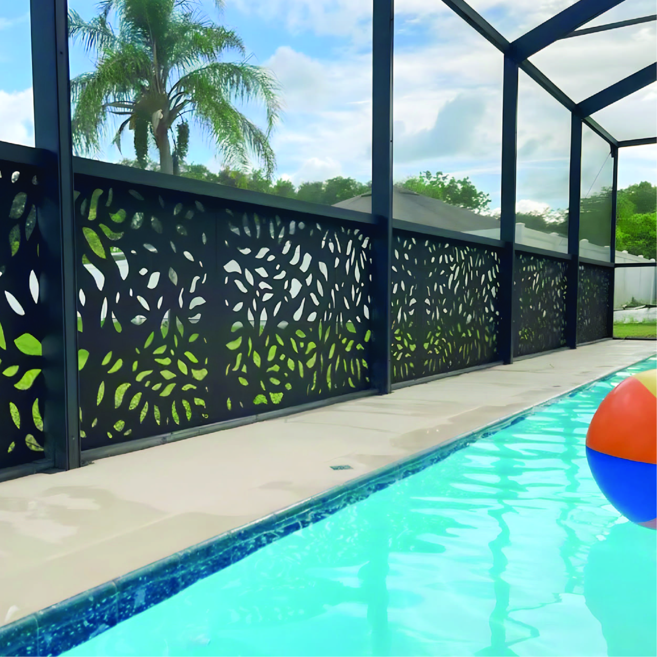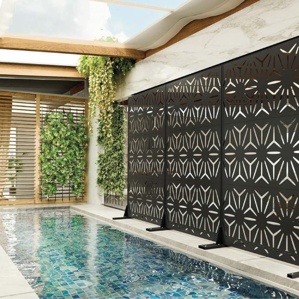 Functional and decorative dividers to enhance poolside privacy and safety.