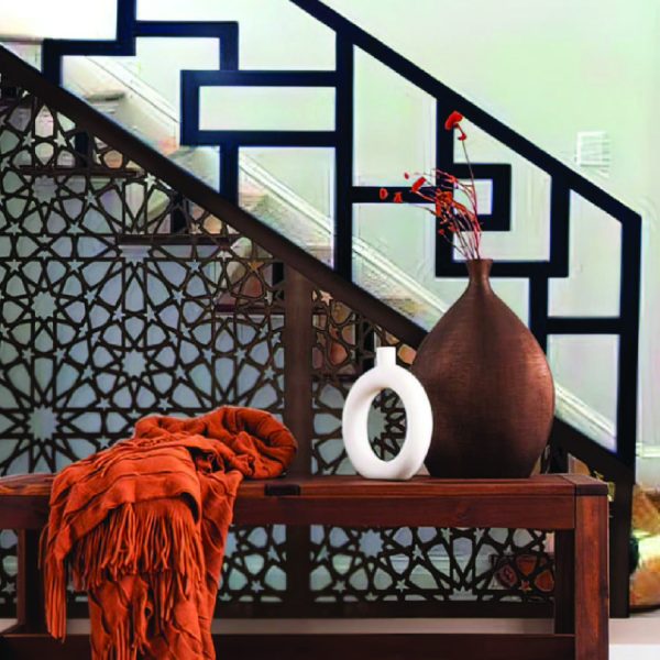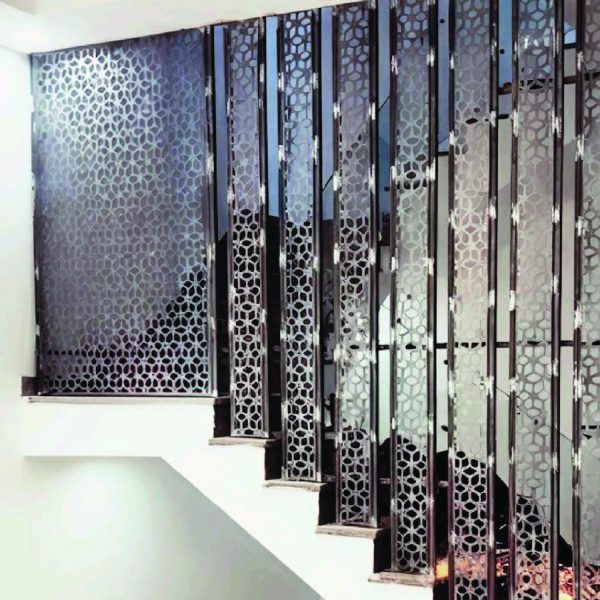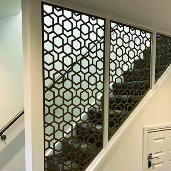 Adds decorative appeal to stairways and hallways with laser-cut panels.
